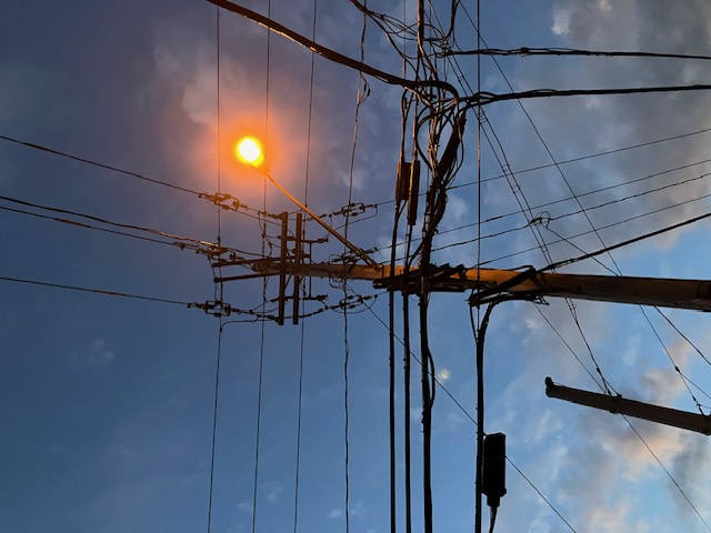 A simple street lamp still shining at dawn creates a striking scene above Main Street in Middleburgh