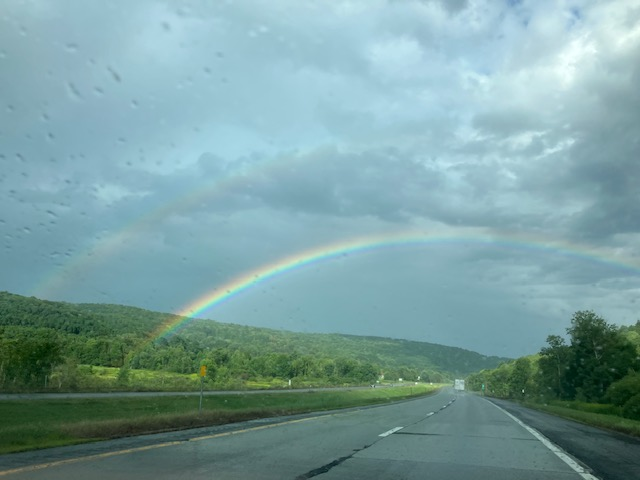 A (double, look closely!) rainbow spotted after a summer storm somewhere on I-88